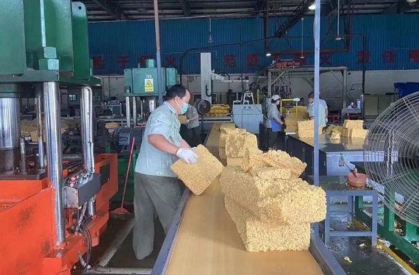 金隆加工分公司包裝車間正抓緊全乳膠的產品包裝生產。