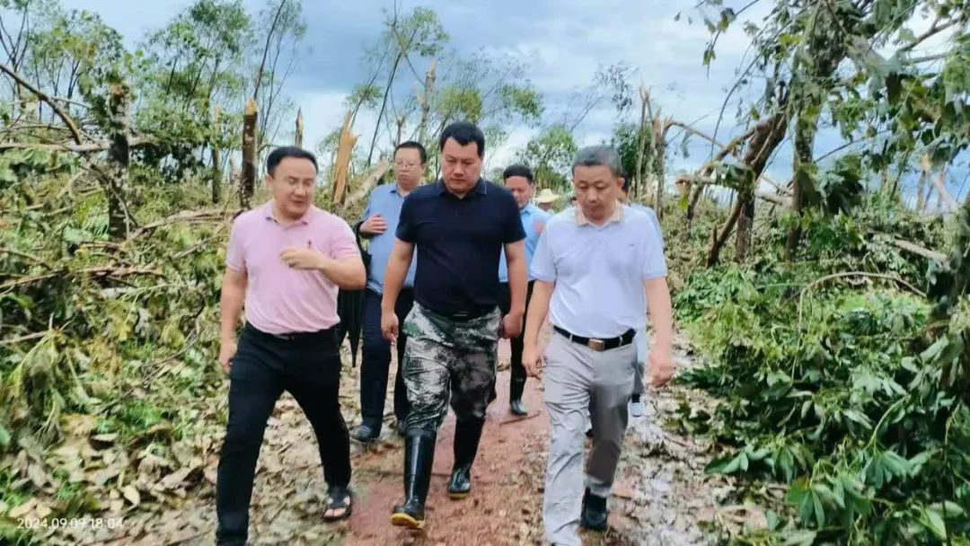 9月18日下午,海南橡膠黨委書記王宏向帶隊赴紅華分公司調研指導臺風“摩羯”災后恢復及復工復產工作。