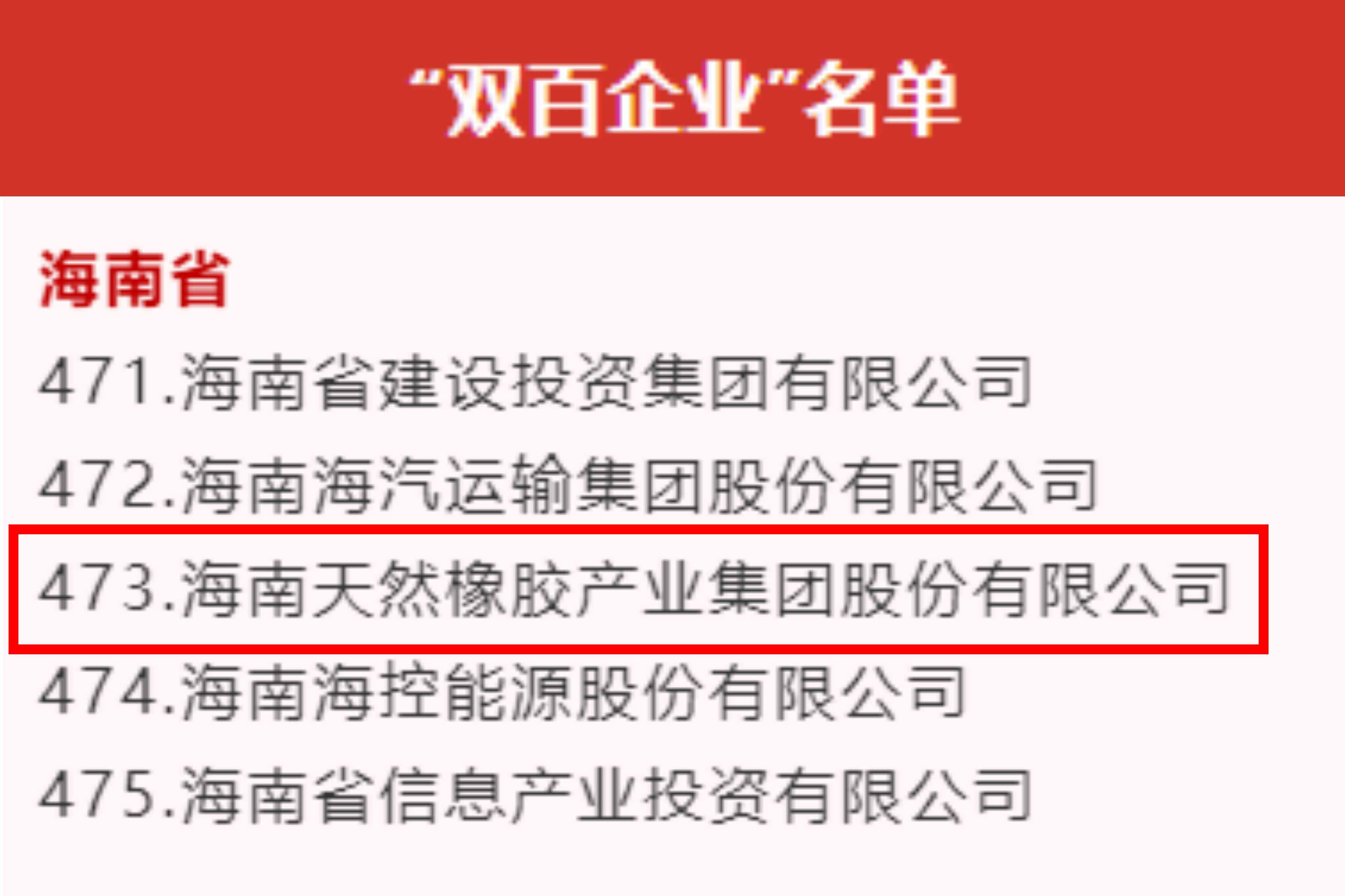 日前,國務院國資委網站公布最新“雙百企業”名單,海南共有5家國有企業上榜,海南橡膠入選名單。