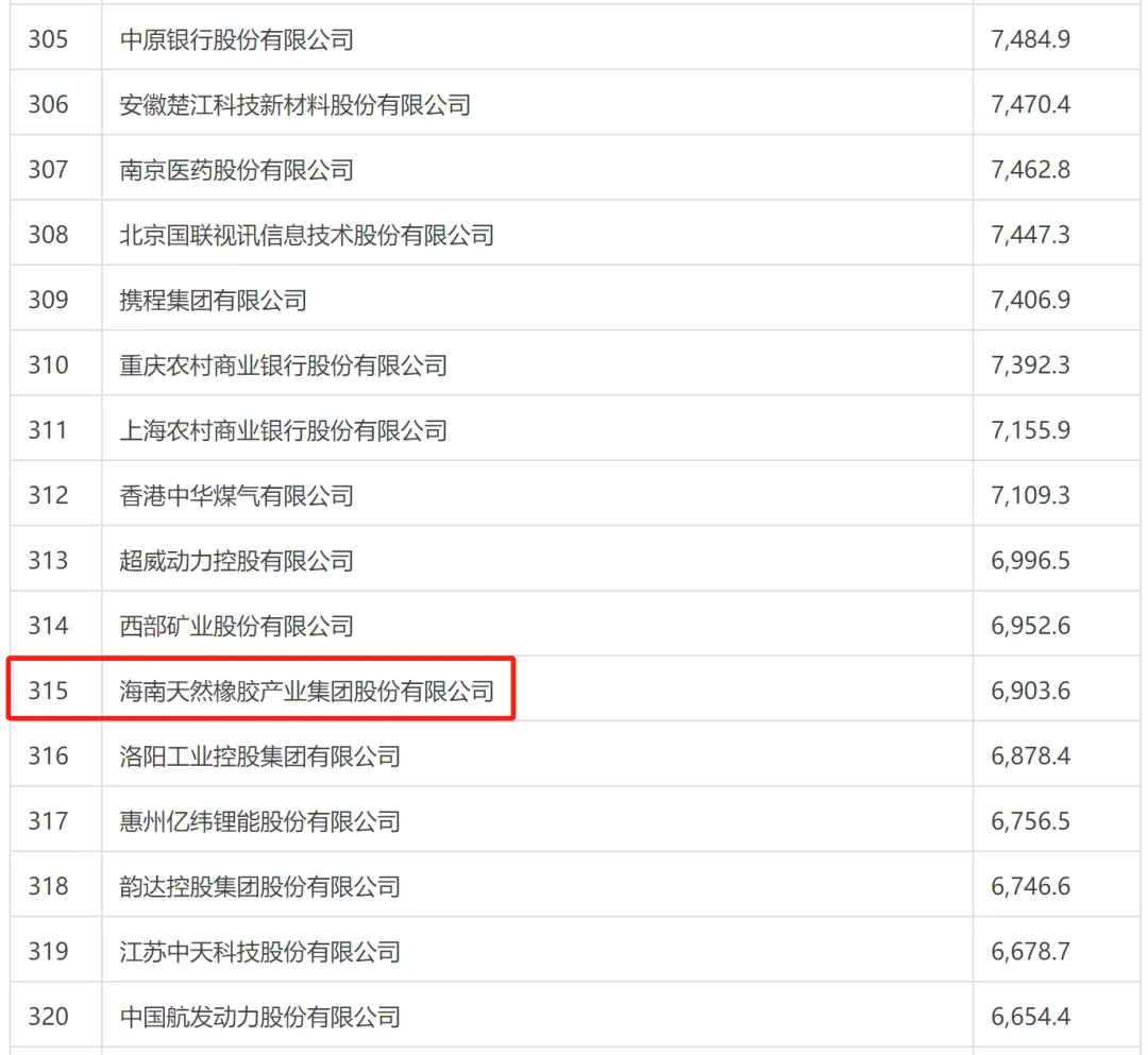 7月22日,財富中文網(wǎng)正式發(fā)布2025年《財富》中國500強排行榜。海南橡膠憑借2024年度6903.6百萬美元的營業(yè)收入成功上榜,位列第315位。